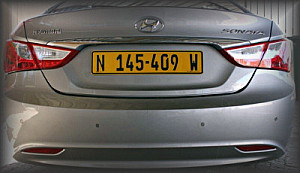 The Standard Vehicle Registration Plates for Namibia are yellow fluorescent with imprints in black. This is the only legalised type of number plate that may be used on your vehicle.