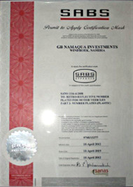 At G.B. Namaqua Investments we offer you the best of the best when it comes to new number plates for your vehicle. We make use of the latest technology in manufacturing Namibian number plates which are SABS approved.